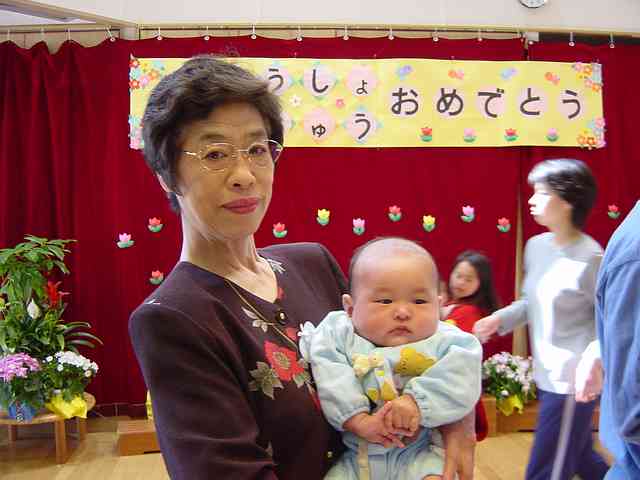 なんだか可哀相だなぁ、とも思ったけど、楽しく行っているようです。おばーちゃんも駆けつけてくれて、一緒に入園式。