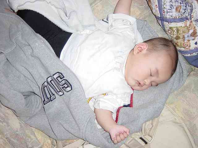 とちとち、この日、初の寝返りを打つ。まぁ、さすがにその瞬間というのは撮れないので、代わりにそれっぽい姿勢で寝ている写真でも。。。。(。_・☆\ ベキバキ