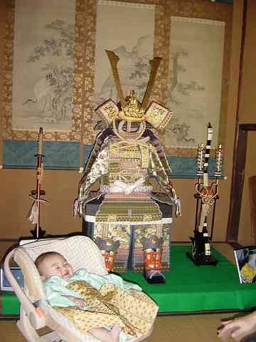 実家に戻ると、座敷の床の間に鎧兜が!!しかも、この鎧、5歳になったら着られるらしいですが。。着られるようになったら、これを着せてカタナに跨らせて写真を撮りたいと思うのは僕だけなのでしょうか???(^_^;)