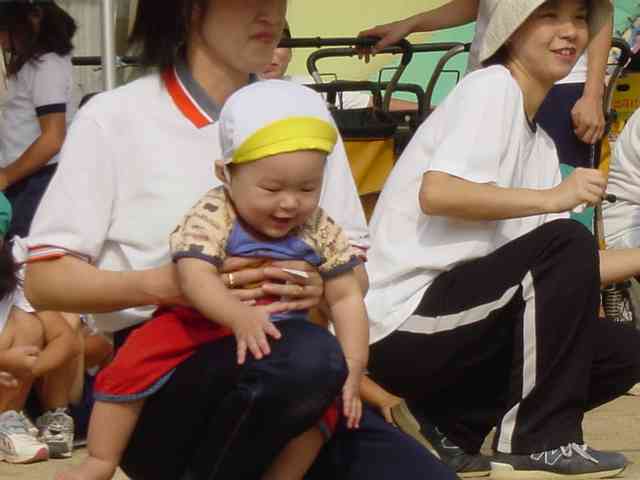 とちとちは、まだ立てるかどうかぐらいの状態だったので、ハイハイメインで戦っていました。(^_^;) 途中でコースアウトして障害物から転落して観客のウケを取っていました。