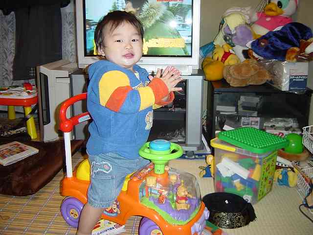 ムカポンの家で、ユートンが持っていた車を羨ましそうに見ていたので、KUROCCO(くろっこ)がじーちゃんにねだって、とちとちにもマイカーを買ってもらいました。