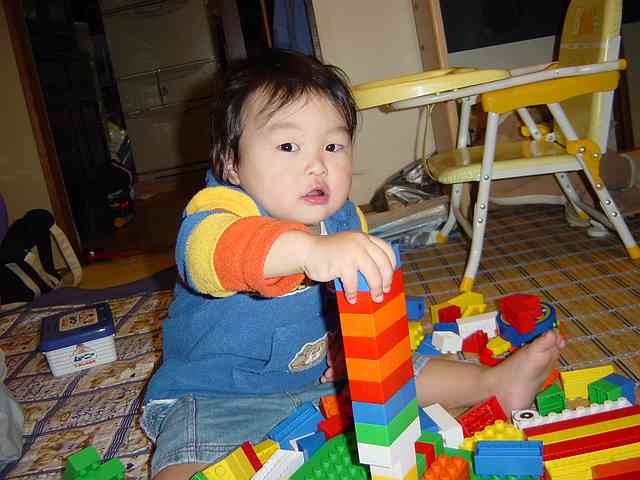 遊んでくれるかどうか心配だったんだけど、このとーり!って同じカタチのブロックをひたすら積んでいくだけですが。。(^_^;)