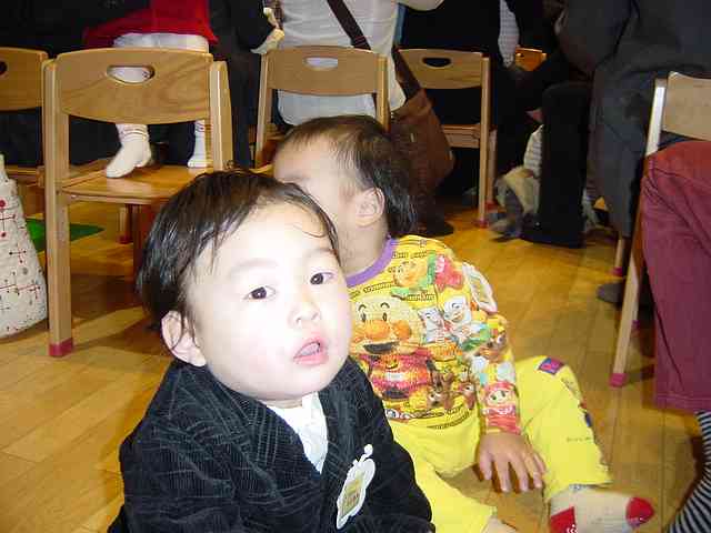 とちとちの行っている保育園は、毎年入園式が行われるので、おめかしして行ってきました。でも、この日は珍しく相当のグズラちゃんだったらしく、まともな写真はこれっきり。。もうちょっとキリっとした顔で写って欲しいモノです。(^_^;)