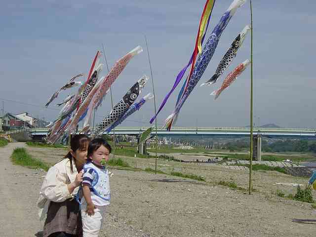 川沿いに1km以上続く、鯉のぼりの列は、なかなか壮観です。大分県の谷間にある温泉街で昔は何度か見たことがあるのですが。。。関西でこういうのをやっているところがあるとは知りませんでした。
