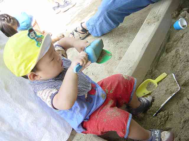 楽しそうに砂場で遊ぶとちとちですが。。「ぎゃ〜〜っっ!!砂がぁぁぁl!!!!」どうりで保育園で着替えた後の服がドロドロな訳だ。。。(^◇^;)